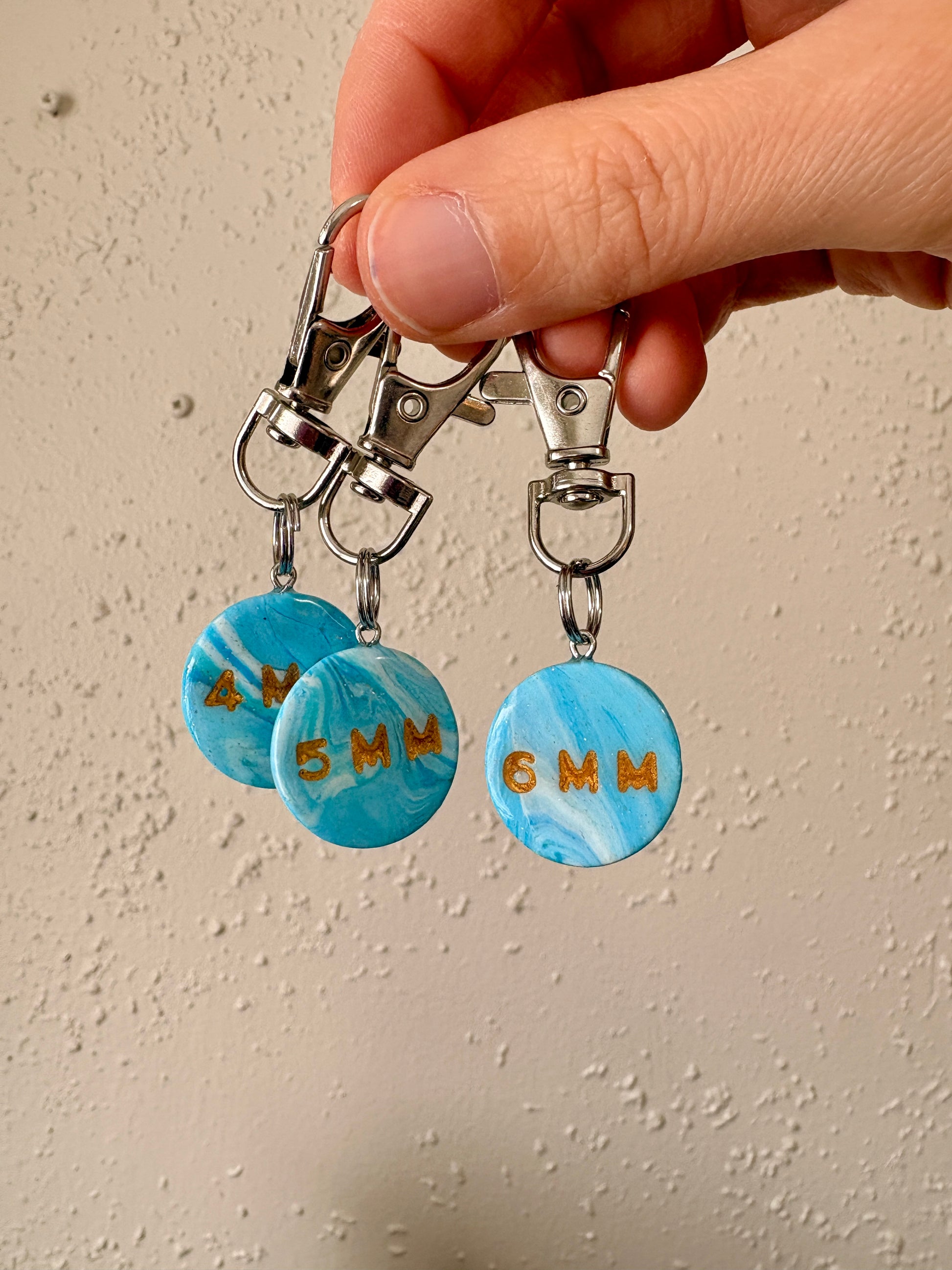 My stitch markers that I handmade using high quality, polymer clay!