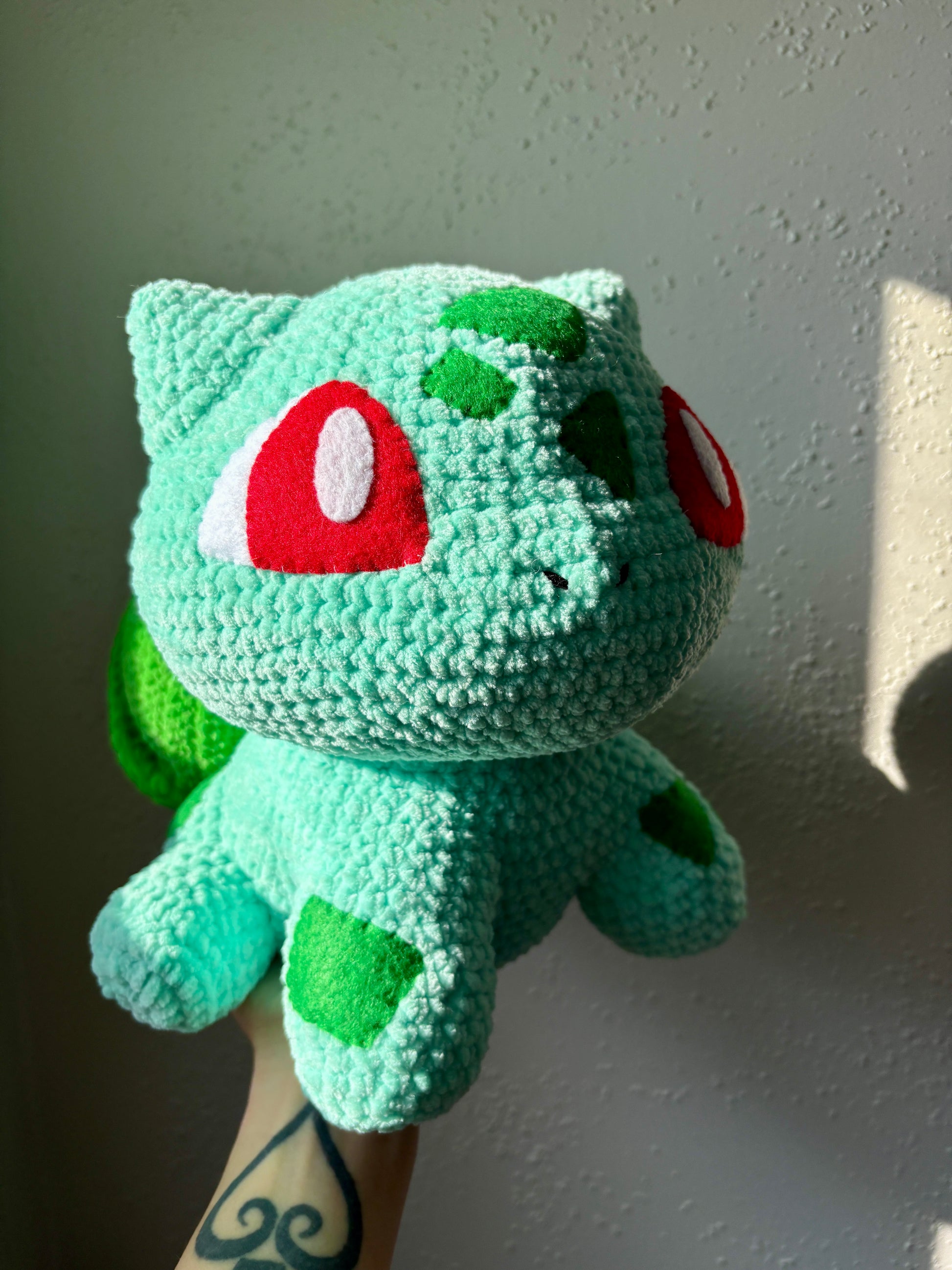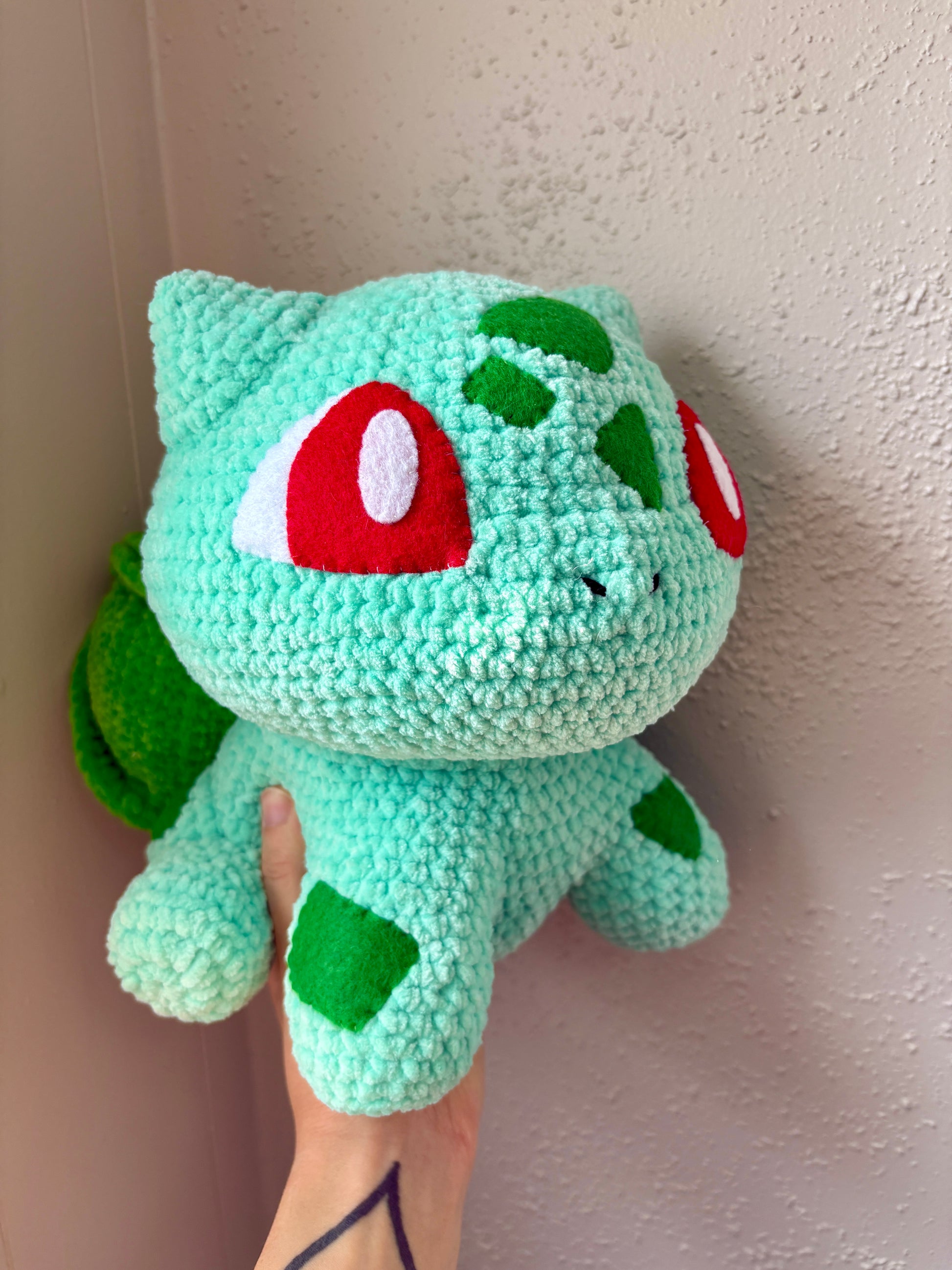 Another one of my favorite plushies I have ever made! He was handmade using soft chenille yarn, and felt sewn eyes. Perfect for Pokemon lovers! He was a labor of love that took days to make!