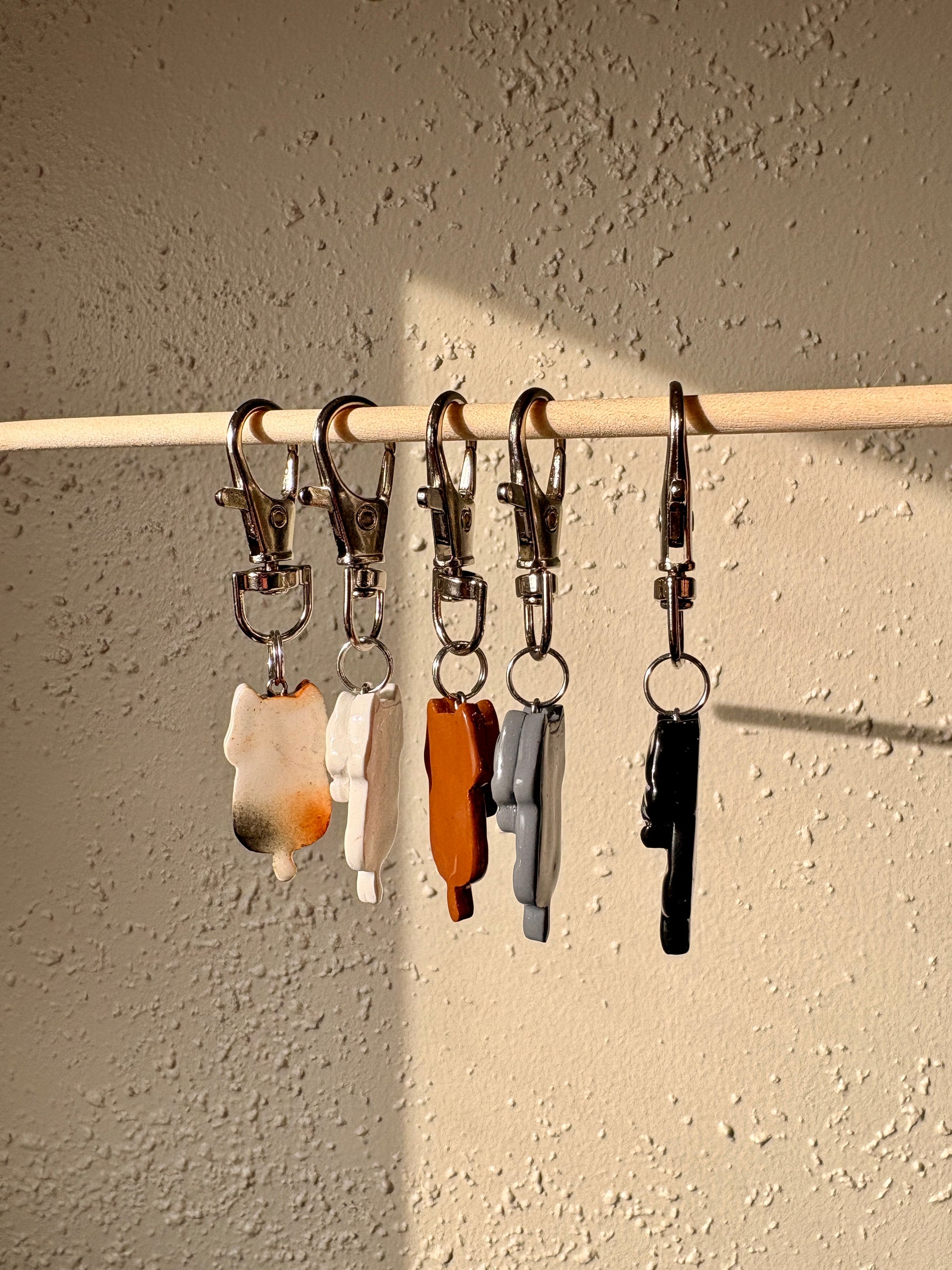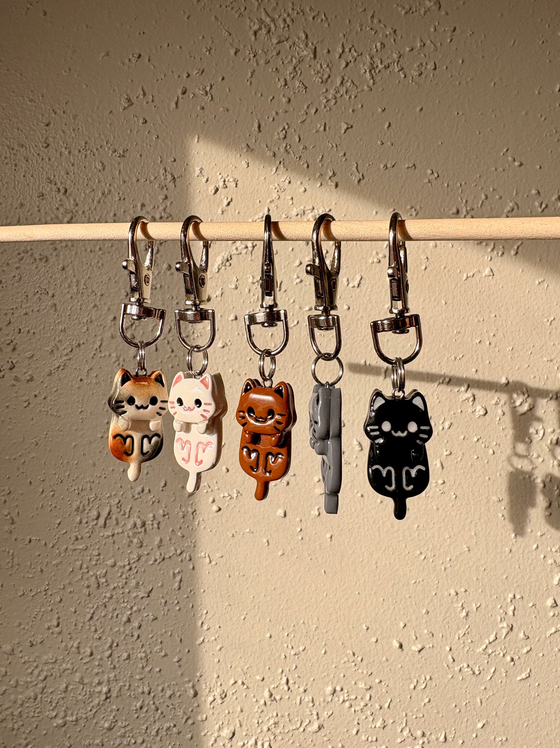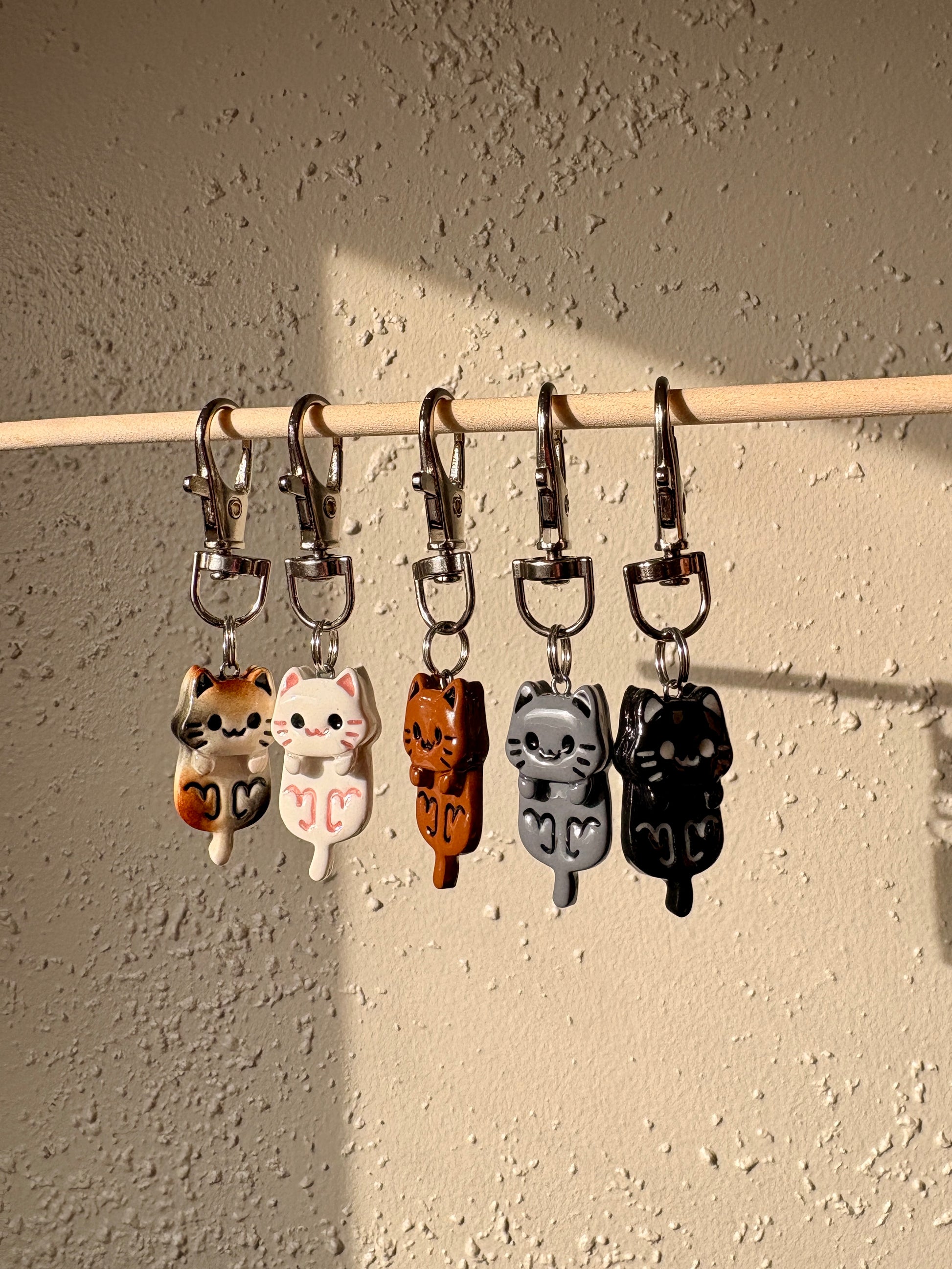 These cats are to die for! They are handmade out of polymer clay and coated with UV resin, so they can endure almost anything!